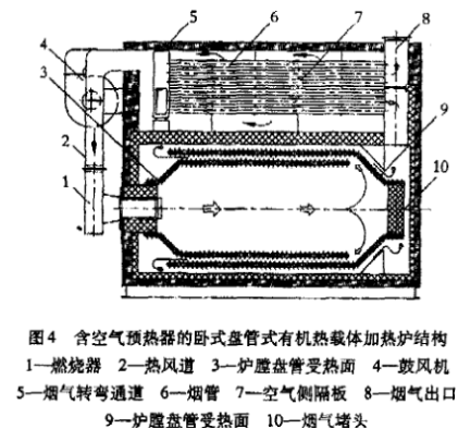 出于節能考慮,一些大容量的有機熱載體加熱爐應該在其尾部增設空氣預熱器,以便使排煙溫度降低。